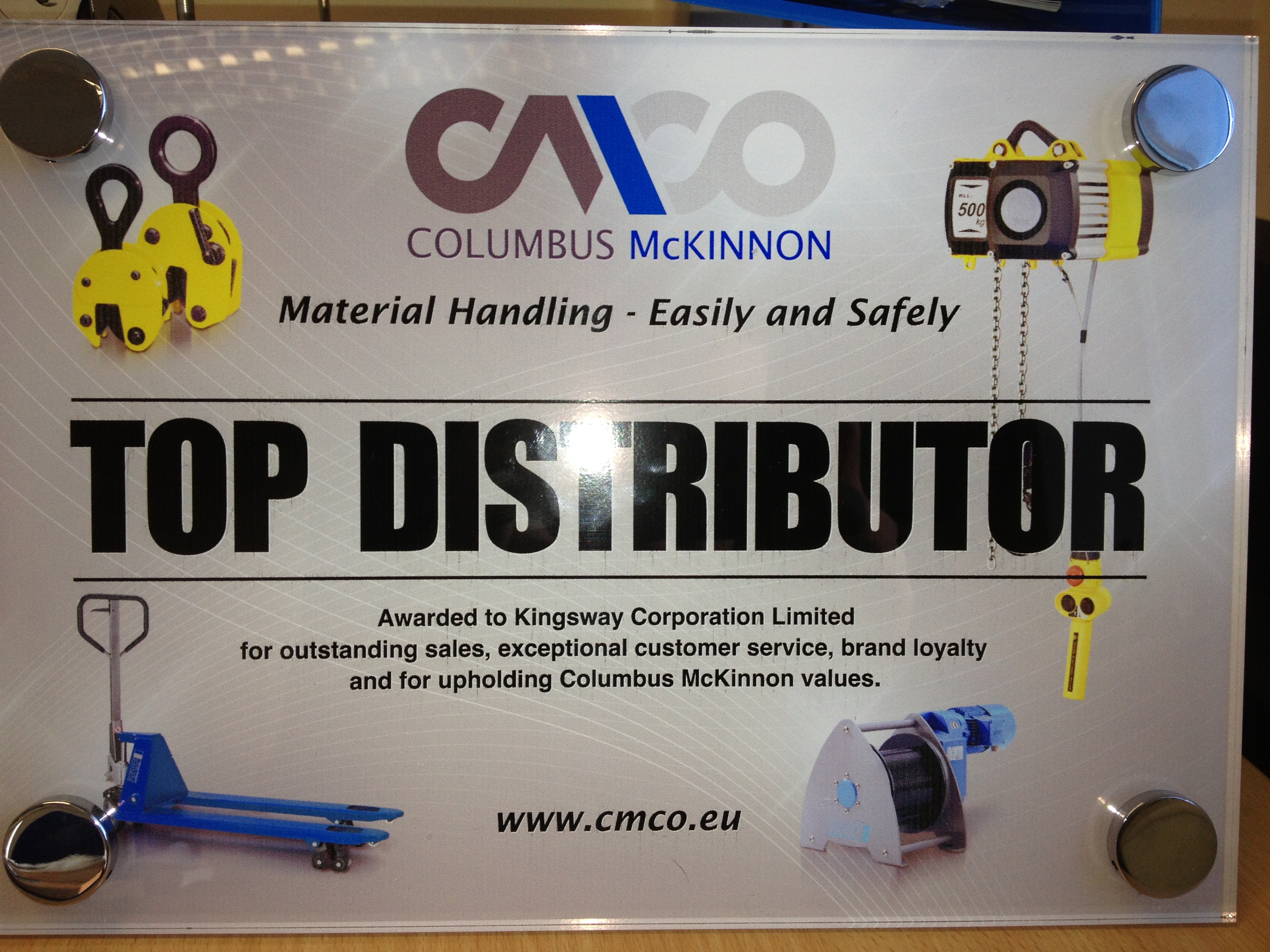 This morning we had a visit from a Columbus McKinnon representative who presented us with the award for ‘Top Distributor’ For our outstanding sales, exceptional customer service, brand loyalty and for upholding Columbus McKinnon values.